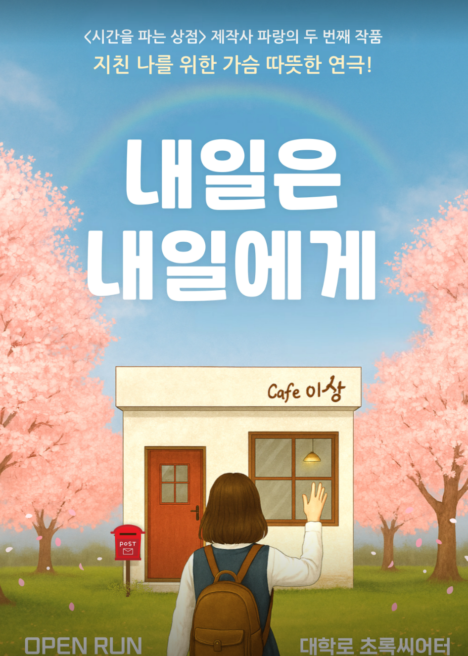 대학로 초록씨어터에서 오픈런으로 상연 중인 연극 〈내일은 내일에게〉는 일상에 지친 우리에게 “오늘을 충분히 살아냈다면, 내일은 내일에게 맡기자”는 감성 메시지를 전합니다.